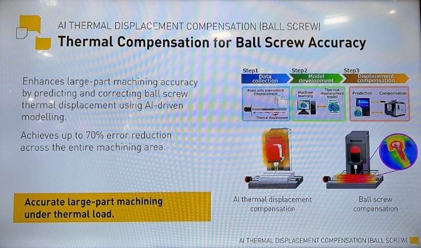 高精度控制技術 AI 熱變位補償 現場展示溫度感測器+AI 模型對精度的即時補正。