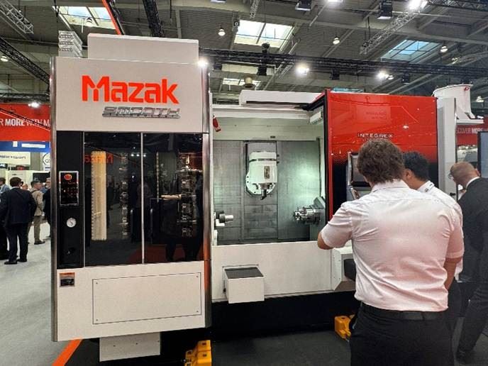 本屆EMO展會中MAZAK共展出20台機器,其中包含7項全球首發機種與5項歐洲首發,並搭配12套自動化系統,全面展現其在多工複合加工、自動化整合與數位製造上的深厚實力。而本次展出主軸之一是「深度製程整合(Deep Process Integration)」,其為將車削、銑削、雷射加工、齒輪切削、摩擦攪拌焊接(FSW)等多種工序整合於單一機台或製造單元中,以減少工序轉換與工件搬運時間,能大幅降低加工週期與能源消耗。