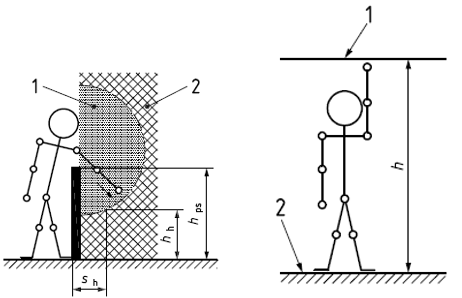1:基準面,2:髖關節,3:防護結構h:到防護結構的高度,l:限制距離