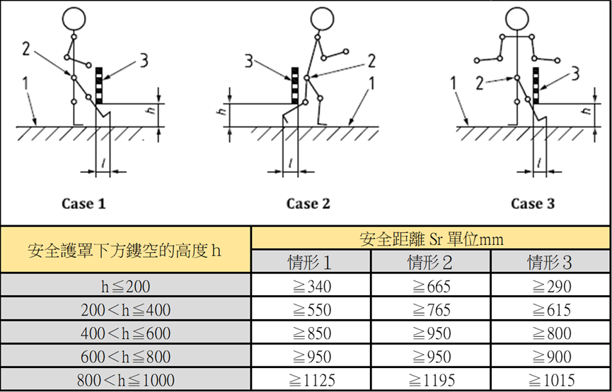 - 下肢透過護罩高度可自由進入危險區的設計要求。