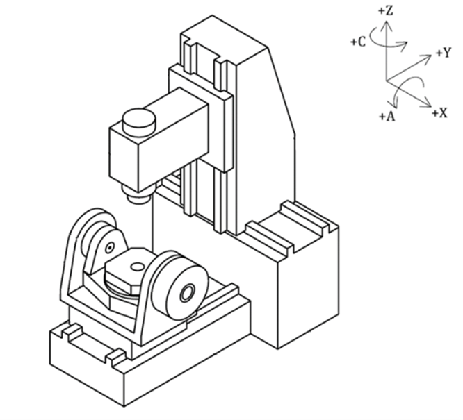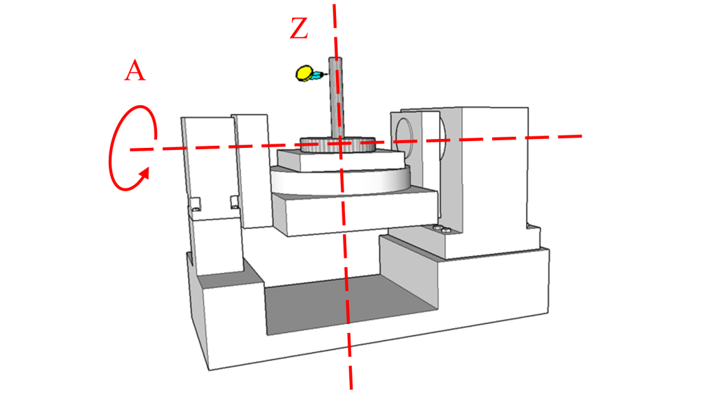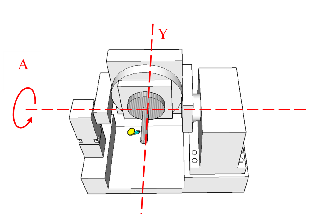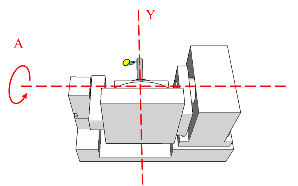 3.參考圖五,旋轉軸間的垂直度:關鍵的是,A軸的旋轉軸線必須與Y軸、Z軸的運動方向保持高度垂直。A軸與Y軸、Z軸的關係,直接決定了傾斜面加工時刀具姿態的準確性。