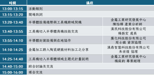 因應AI賦能帶動半導體市場蓬勃發展,面對國際變局與匯率壓力,工具機產業切入終端市場已是必然選擇。本次活動響應TMTS 2026願景,聚焦半導體精密加工與製程開發,藉由跨產業交流與政府補助資源說明,協助業者突破技術壁壘並降低研發成本,共同強化半導體設備國產化的核心實力。